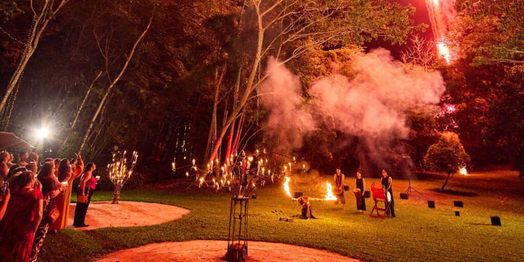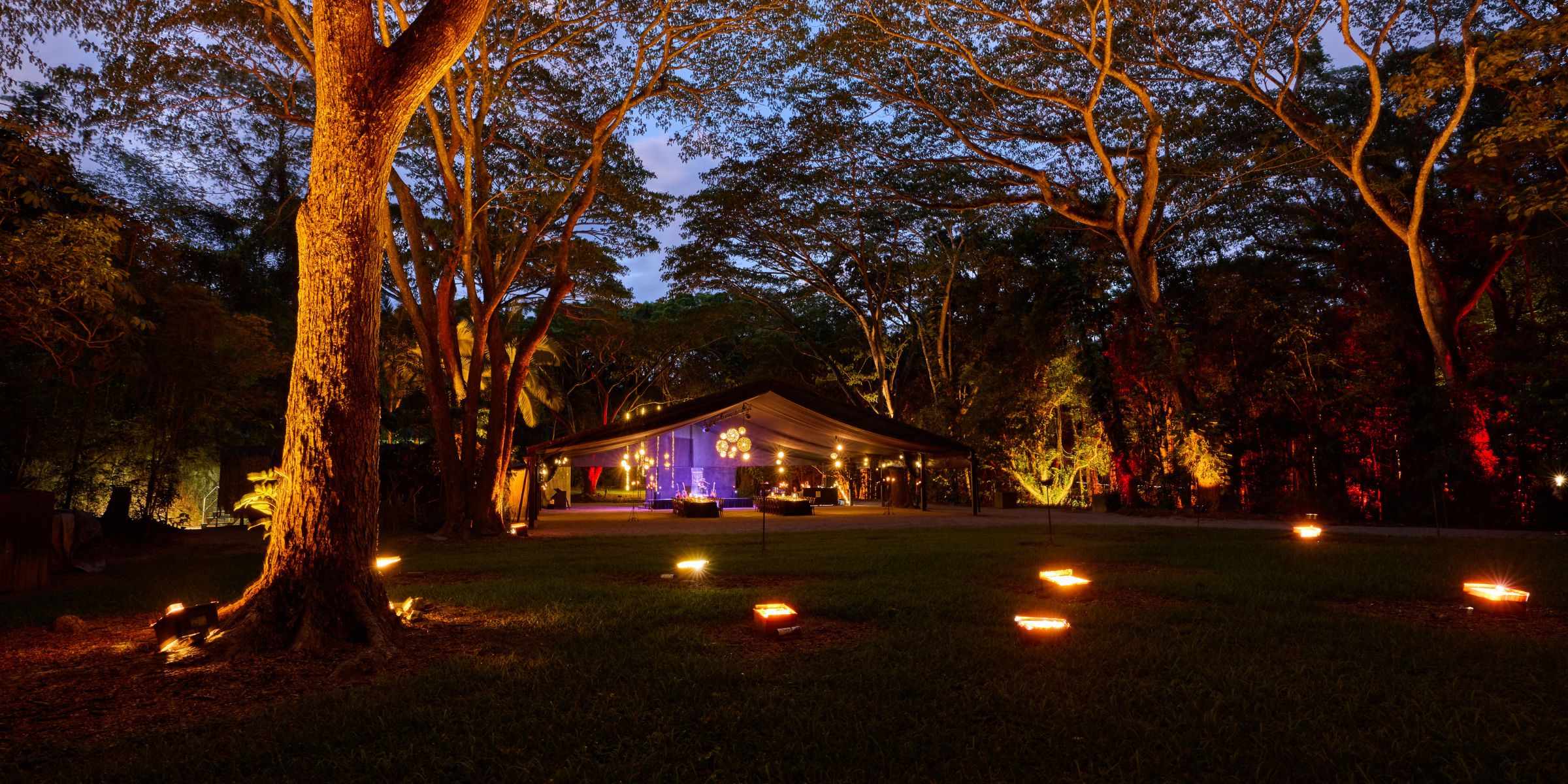 Award winning Flames of the Forest is Tropical North Queensland’s ultimate event hidden in the heart of one of the oldest rainforest’s on earth. The only off site venue with a black silk lined marquee highlighted by crystal chandeliers and hundreds of flames, Flames of the Forest is truly an elegant rainforest ballroom that won’t wash out with a little drizzle!