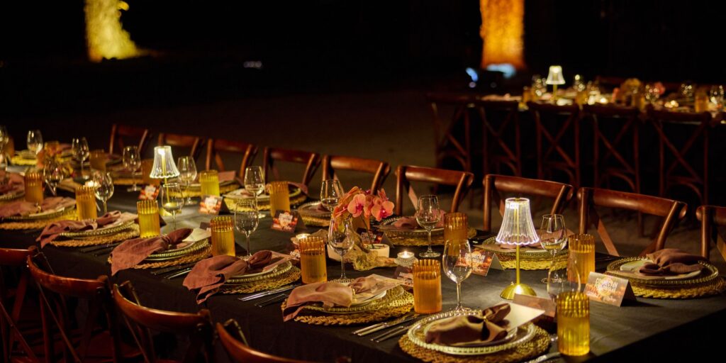 Offsite does not have to mean uncomfortable, boring or shrinking violet. Flames features marble bathrooms, padded chairs, pashminas for ladies and an incredible range of entertainment options. From the dramatic (tenor appearing from the forest) to the big name (the office favourite is Diesel) and everything in between, plus the ultimate WOW factor of a burning reveal, blazing fire trail or pyrotechnics exploding in the southern sky.